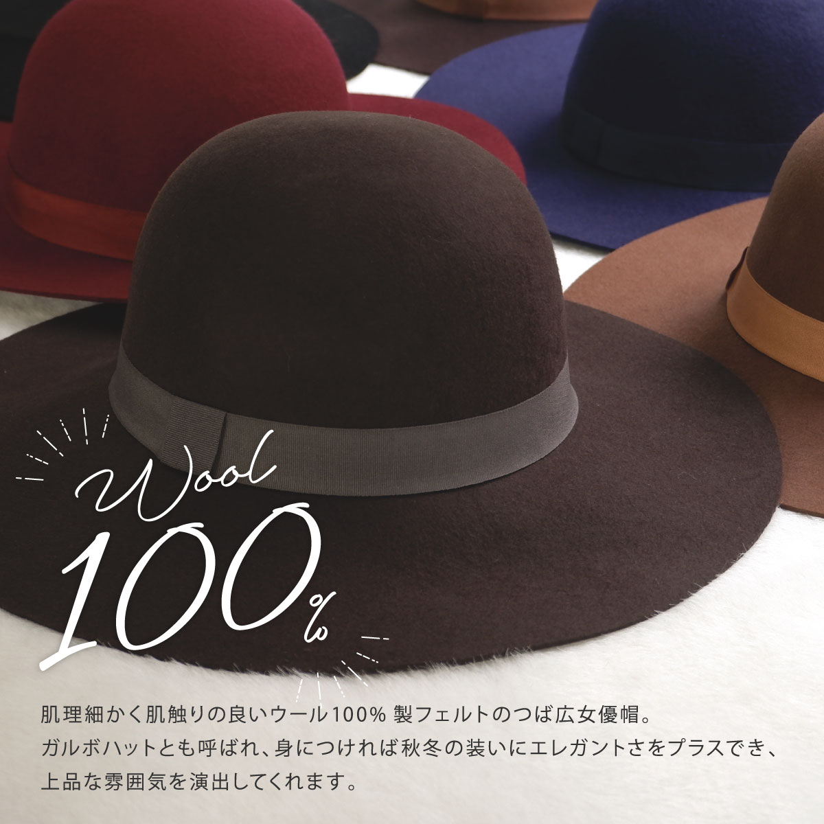 ウールフェルトつば広女優帽帽子 帽子 レディース ウール キャペリン ガルボ ハット つば広 ワイドブリム 女優帽 秋冬 防寒 シンプル 無地 プレゼント ギフト 2024 帽子屋 ケースタ