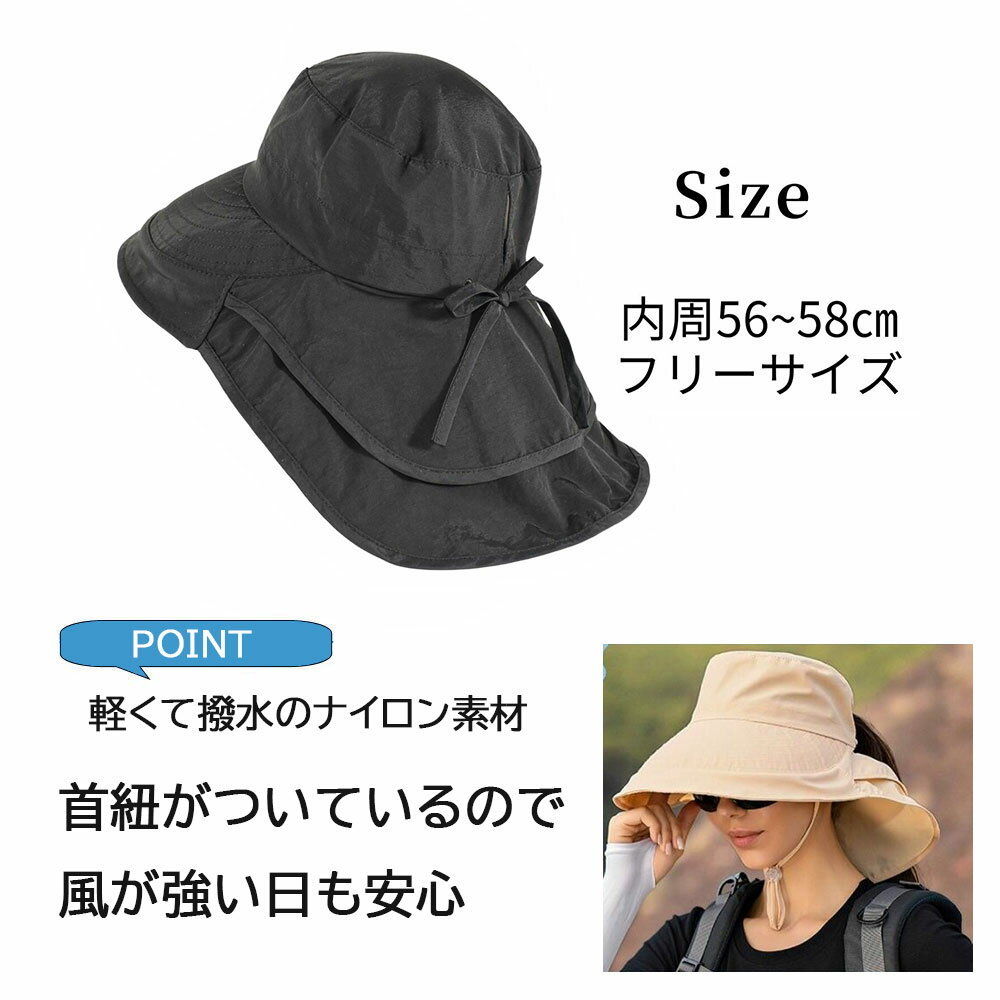 本日はポイント5倍デー! 日焼け防止 帽子 日除け帽子 つば広帽子 レディース uvカット おしゃれ 日よけ 首の後ろ ぼうし 遮光 あご紐 首紐 自転車 飛ばない ブラック ベージュ グレー ネイビー カプリーヌ 折りたたみ 運動会 アウトドア ガーデニング キャンプ 日除け uv