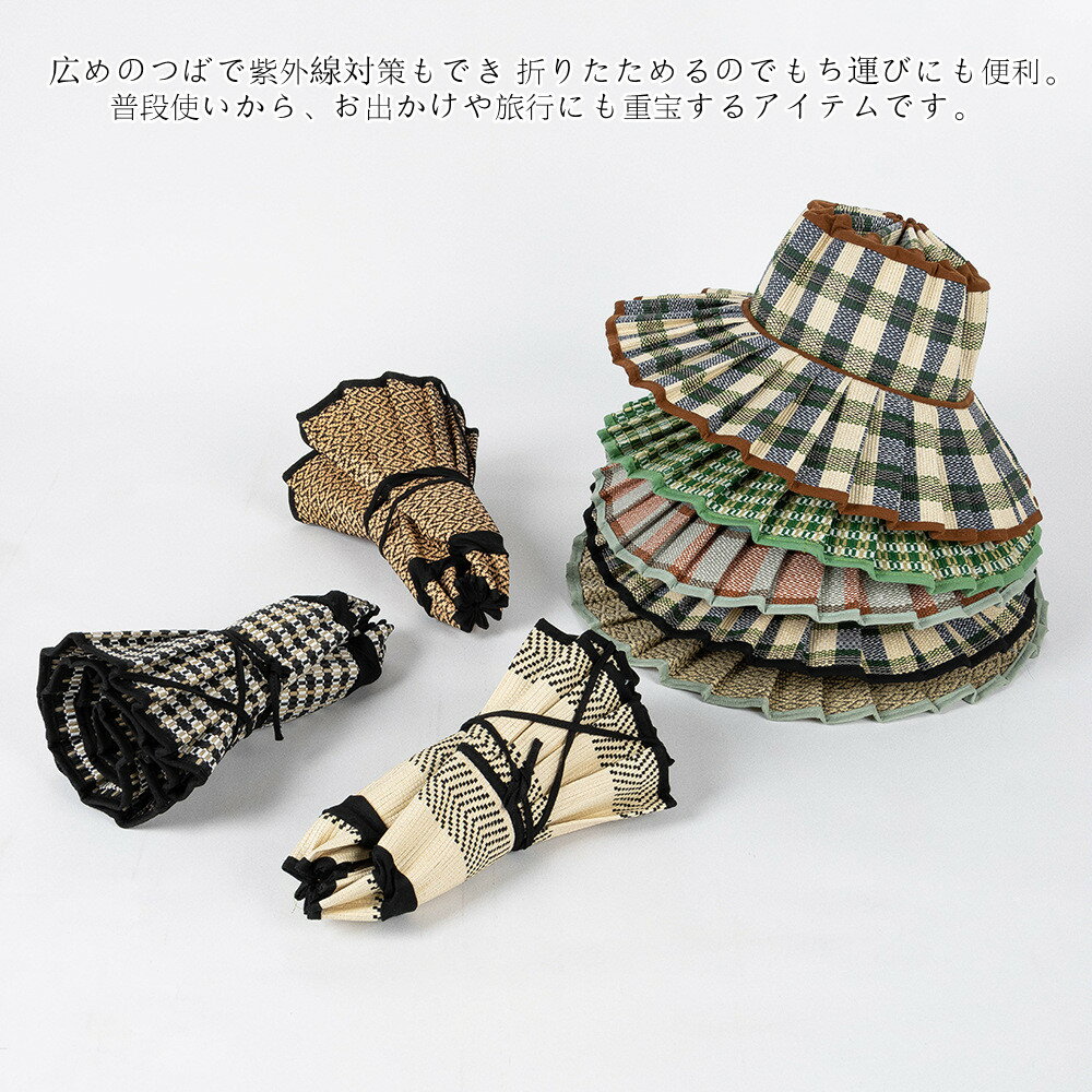 【クーポンご利用で2059円】帽子 UVカット UVケア 春 夏 ハット つば広 幾何学柄 麦わら帽子 折りたたみ 麦わら帽子 ストローハット あご紐 大人子供 ハット 麦わら 小顔効果 深め おしゃれ レディース折りたためるストローハット