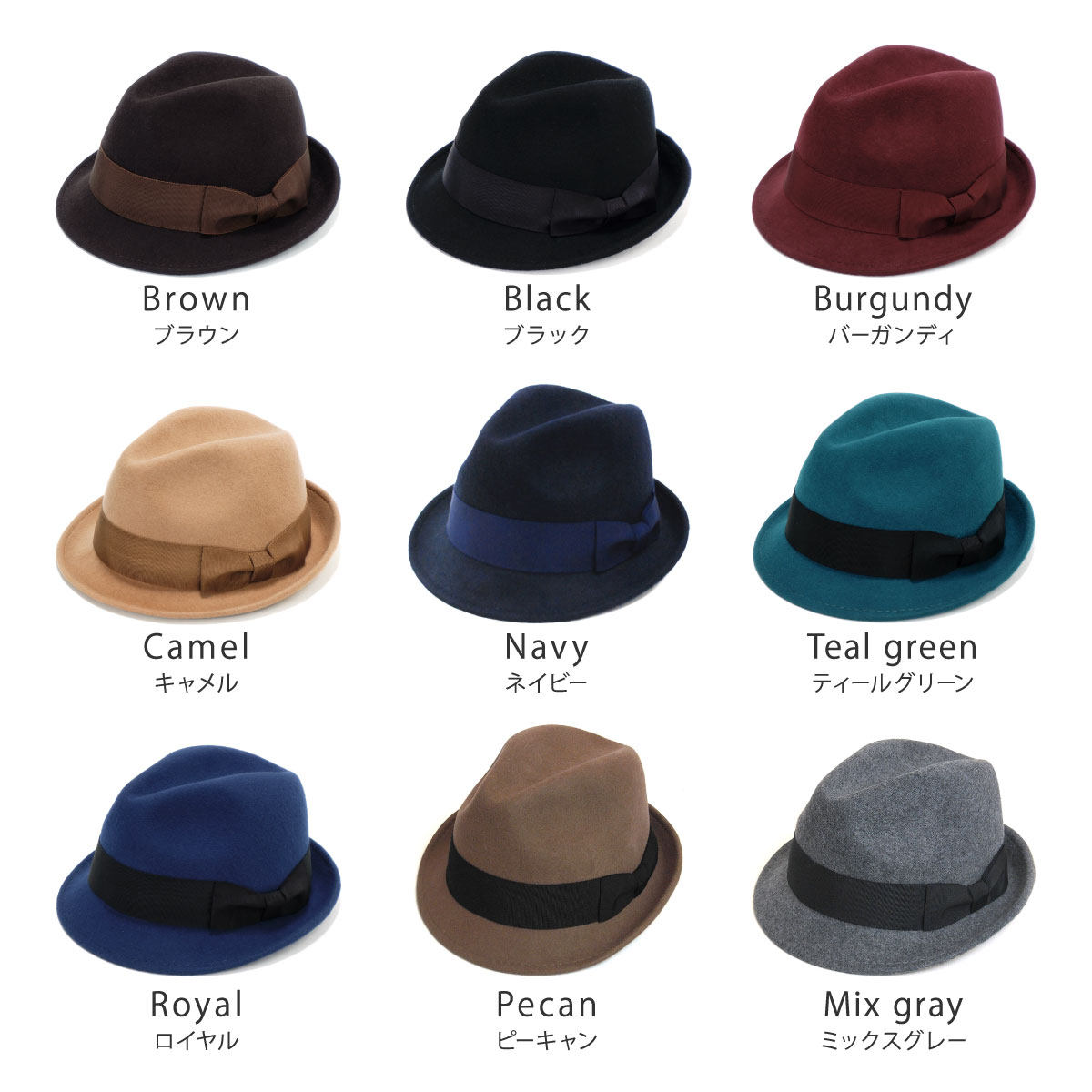 カラーフェルト中折れ帽子【日本製】【大きめサイズ】 帽子屋 ケースタ