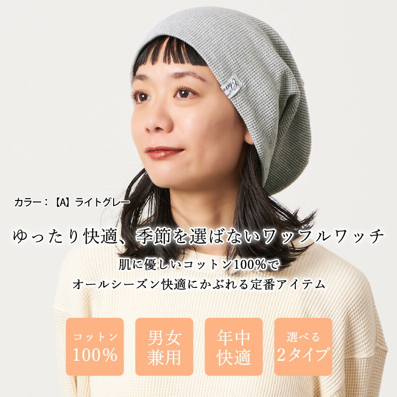 【楽天ランキング1位獲得】【メール便送料無料】LARGEワッフル×ストレッチ ビック ワッチ | 医療用帽子 オールシーズン 春 夏 秋 冬 レディース 綿100% コットン 帽子 ニット帽 ニット帽子 ニットキャップ ワッチキャップ おしゃれ かわいい 女性 サマーニット帽