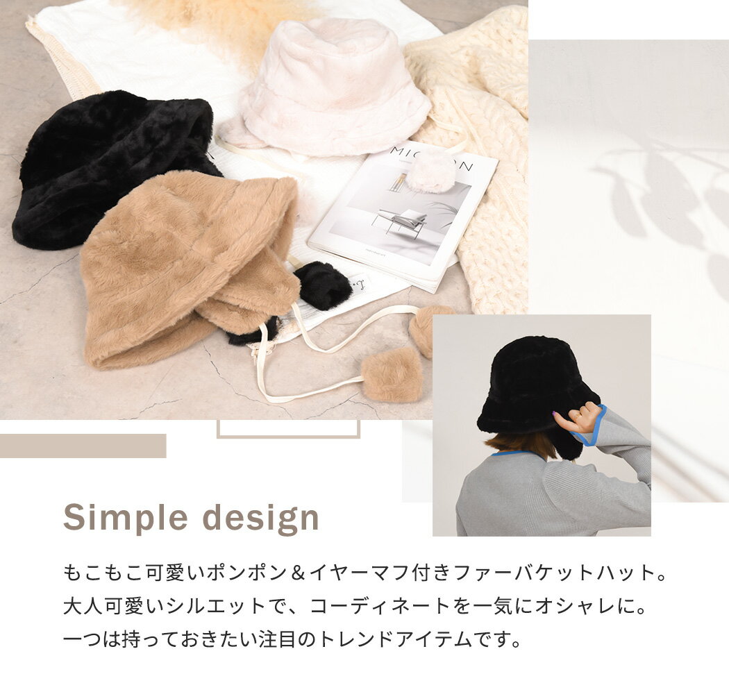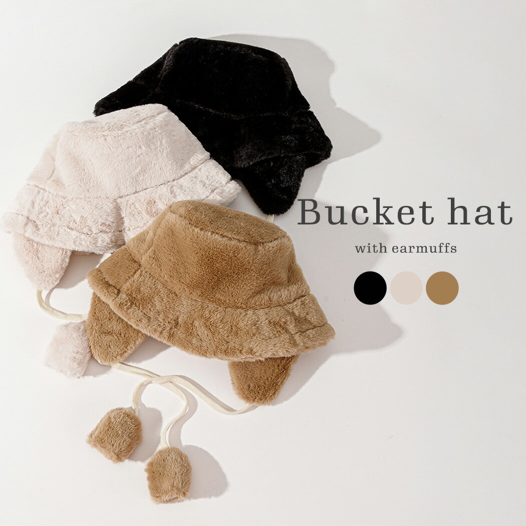バケットハット レディース 冬 もこもこ 帽子 ハット イヤーマフ 2way 取り外し可 フェイクファー 黒 白 無地 防寒 あったか おしゃれ かわいい ふわふわ 折りたたみ 耳当て コンパクト 紐 調節 カジュアル シンプル デイリー 韓国 コーデ アウトドア キャンプ イアマフ