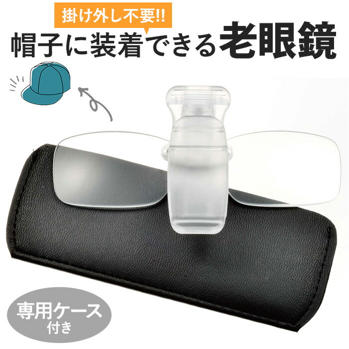 冒険王 老眼鏡 帽子用 通販 帽子用老眼鏡 シニアグラス ネオキャップシニア 眼鏡 めがね メガネ 帽子に装着 帽子につける 帽子対応 クリップオン クリップ メンズ レディース 男性 女性 男女兼用 ケース付き メガネ拭き付き シンプル 大人 ユニセックス